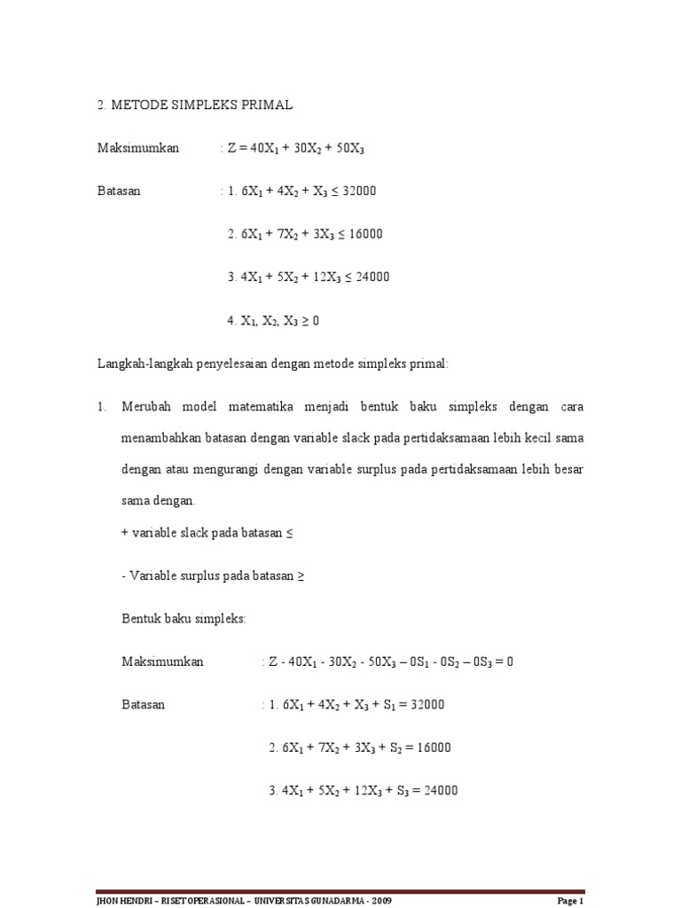 Contoh soal metode simpleks maksimum. Maybe you would like to learn more about one of these? We did not find results for: Check spelling or type a new query.