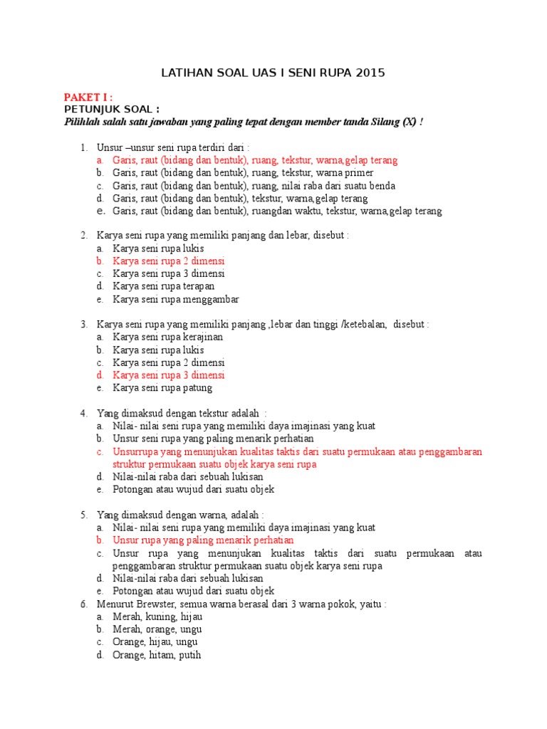Contoh Soal Pilihan Ganda Materi Seni Rupa Terapan Jawabanku Id from id-static.z-dn.net Maybe you would like to learn more about one of these? Check spelling or type a new query. Unsur seni sebagai kombinasi dengan titik kontinu adalah *. We did not find results for: